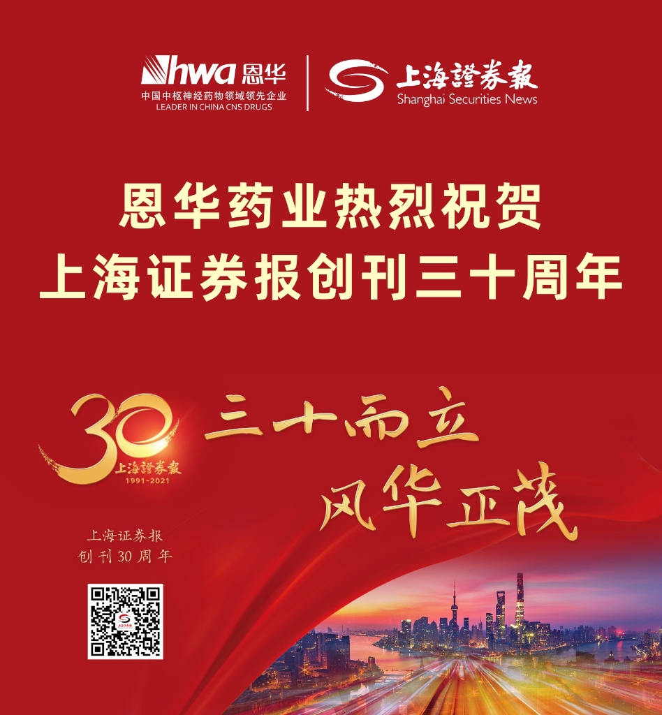 恩华药业恩华药业热烈祝贺上海证券报创刊三十周年 2021-12-21 字号 三十而立,风华正茂!恩华药业热烈祝贺上海证券报创刊30周年! 上海证券报,新华社主办,证券市场信息披露媒体,创立于1991年,是新中国第一份提供权威金融证券专业资讯的全国性财经日报,现已形成涵盖报纸、网站、客户端、视频、微信、微博等平台的全媒体财经传媒矩阵。