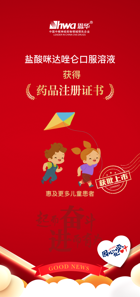 恩华盐酸咪达唑仑口服溶液获批 2022-04-19 字号 公司于近日获得国家药品监督管理局核准签发的化学药品盐酸咪达唑仑口服溶液的《药品注册证书》。 盐酸咪达唑仑口服溶液用于儿童诊断或治疗性操作前以及操作过程中的镇静/抗焦虑/遗忘;也可用于儿童术前镇静/抗焦虑/遗忘。 本次获得盐酸咪达唑仑口服溶液的《药品注册证书》,丰富了公司在麻醉领域的产品管线,有利于提升公司的市场竞争力,其上市销售将对公司今后业绩的提升产生积极的影响。